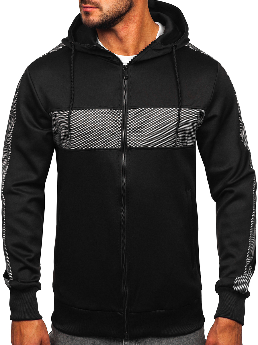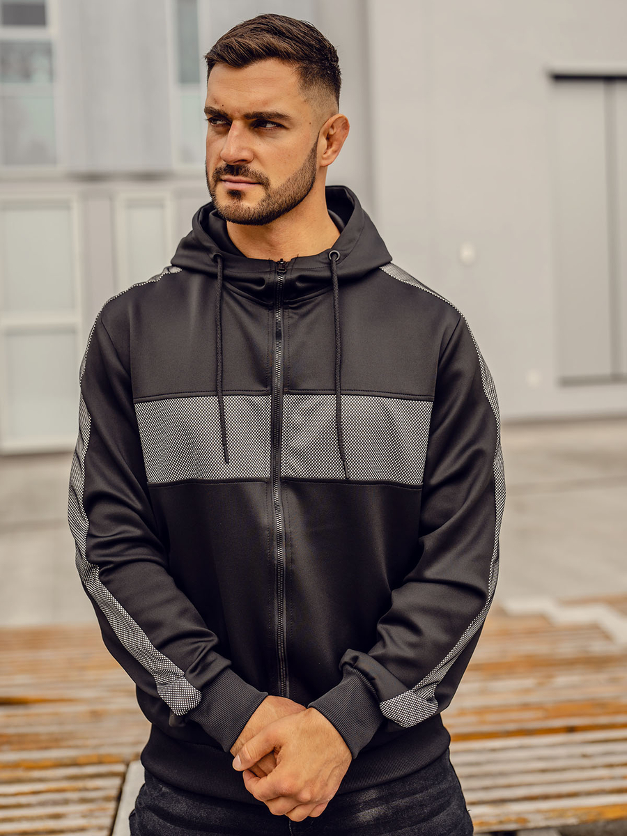 Le sweat-shirt avec fermeture à capuche pour homme noir Bolf 27B8121 va fonctionner quelle que soit la saison! Le sweat-shirt à la coupe classique est fermé par une fermeture éclair et possède une capuche pratique et réglable. Les manches et le bas sont finis par une trépointe pour fournir de la chaleur et proteger contre le vent en jours plus froids. L'imprimé distinctif à la mode sur le devant et sur les manches ajoute un look très moderne. Ils ont deux poches latérales sans fermeture. Il est fait d'un tissu très agréable au toucher. Il fonctionne parfaitement aussi au quotidien et pour l'entraînement. Combinez-le avec un pantalon de survêtement pour créer une tenue de sport classique. Au quotidien le sweat aura l'air parfait avec un jean, un tee-shirt et un blouson en cuir.