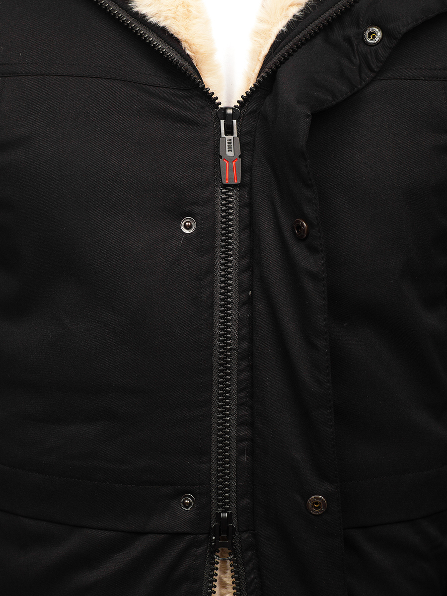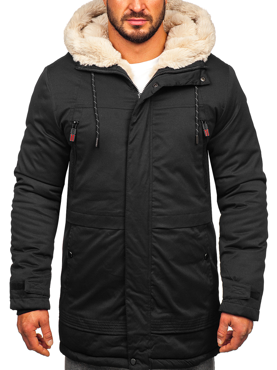 La parka d'hiver matelassée pour homme noire Bolf 22M51 est un excellent choix pour les journées d'hiver. Le blouson d'hiver chaud à capuche réglable est disponible en deux versions de couleurs. Il a un ourlet en fourrure qui garantit une chaleur. Il est fermé par une fermeture éclair et des boutons-pression. Il possède des poches poitrine zippées et latérales à bouton-pression où vous pouvez cacher les choses les plus importantes comme un téléphone, un portefeuille ou des gants. De plus, il y a encore deux poches, l'une d'elles est zippée. La parka sera idéal dans des stylisations quotidiennes. Voulez-vous vous démarquer? Complétez-le avec un pantalon en jean et un sweat imprimé moderne!