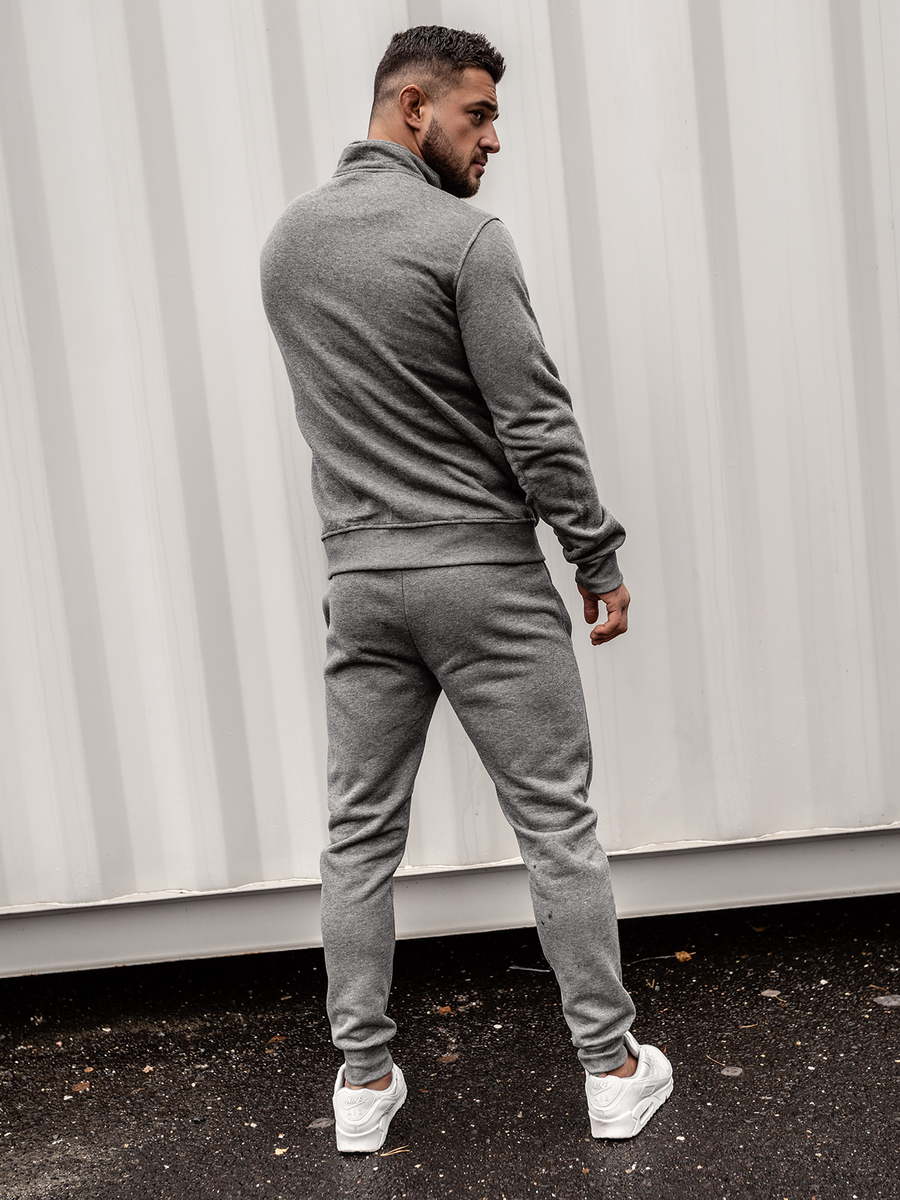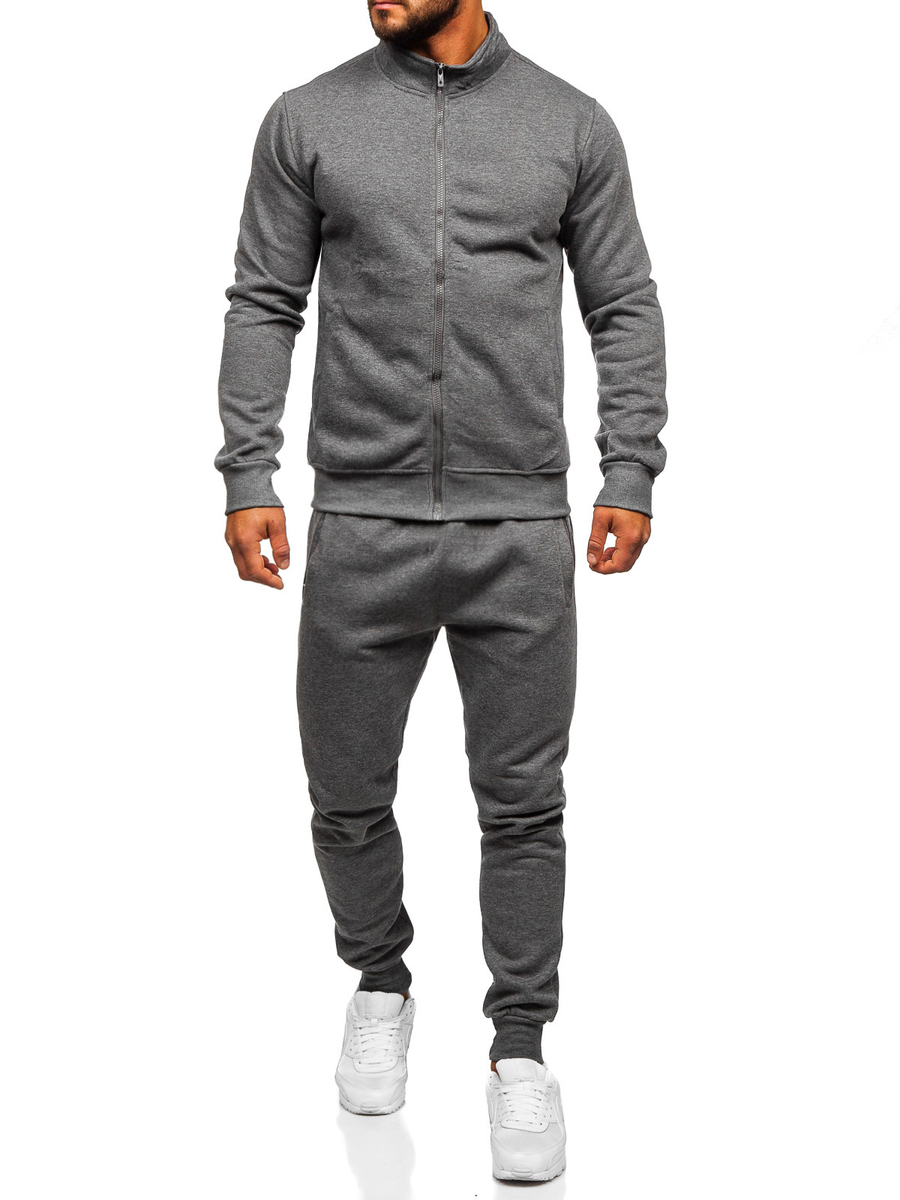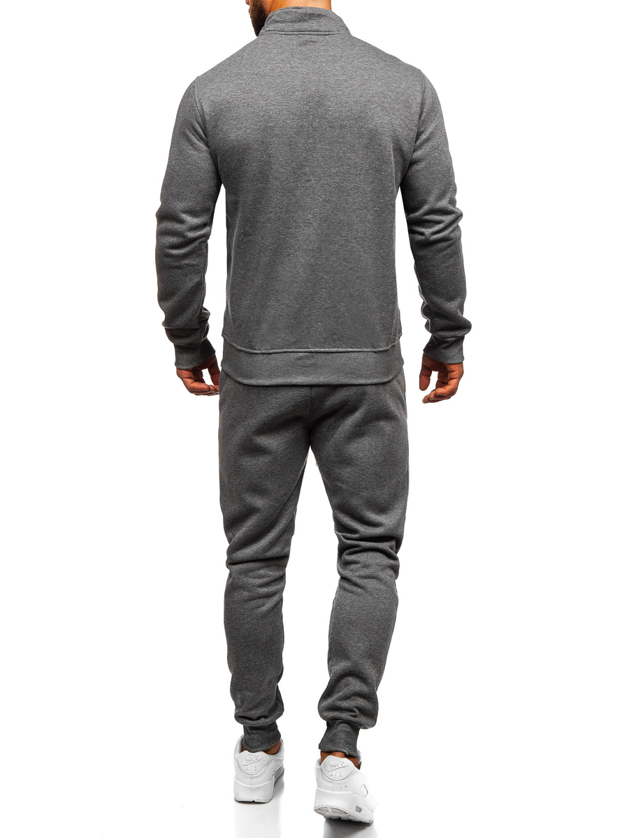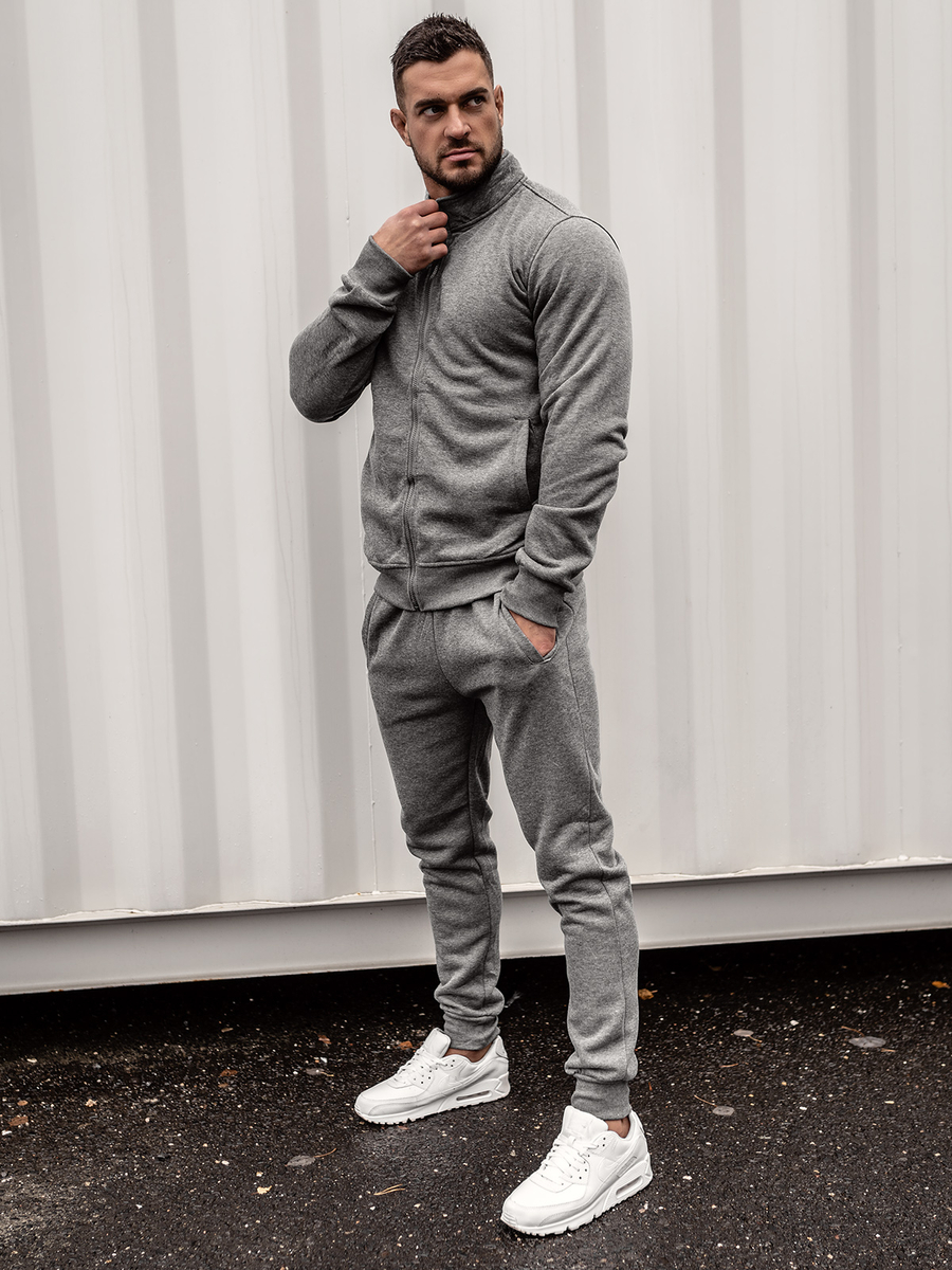 Le survêtement pour homme graphite Bolf 10385 est un set de sport qui est composé d'un sweat-shirt et d'un pantalon sportif. Le sweat-shirt est fermé par une fermeture éclair et possède des poches extérieures. Le pantalon a une taille ajustable avec une trépointe forte et un cordon et deux poches extérieures. Une coupe simple et ajustée lui donne un look de sport. Le produit est fabriqué dans un tissu doux, agréable au toucher. Le complet de survêtement peut être une base universelle pour créer des tenues de tous les jours ou de sport. Le sweat et le pantalon peuvent être combinés avec des autres éléments de la garde-robe pour obtenir plusieures possibilités de la création des stylisations quotidiennes. Le complet va bien fonctionner avec un tee-shirt et un blouson de transition léger ou de sport.