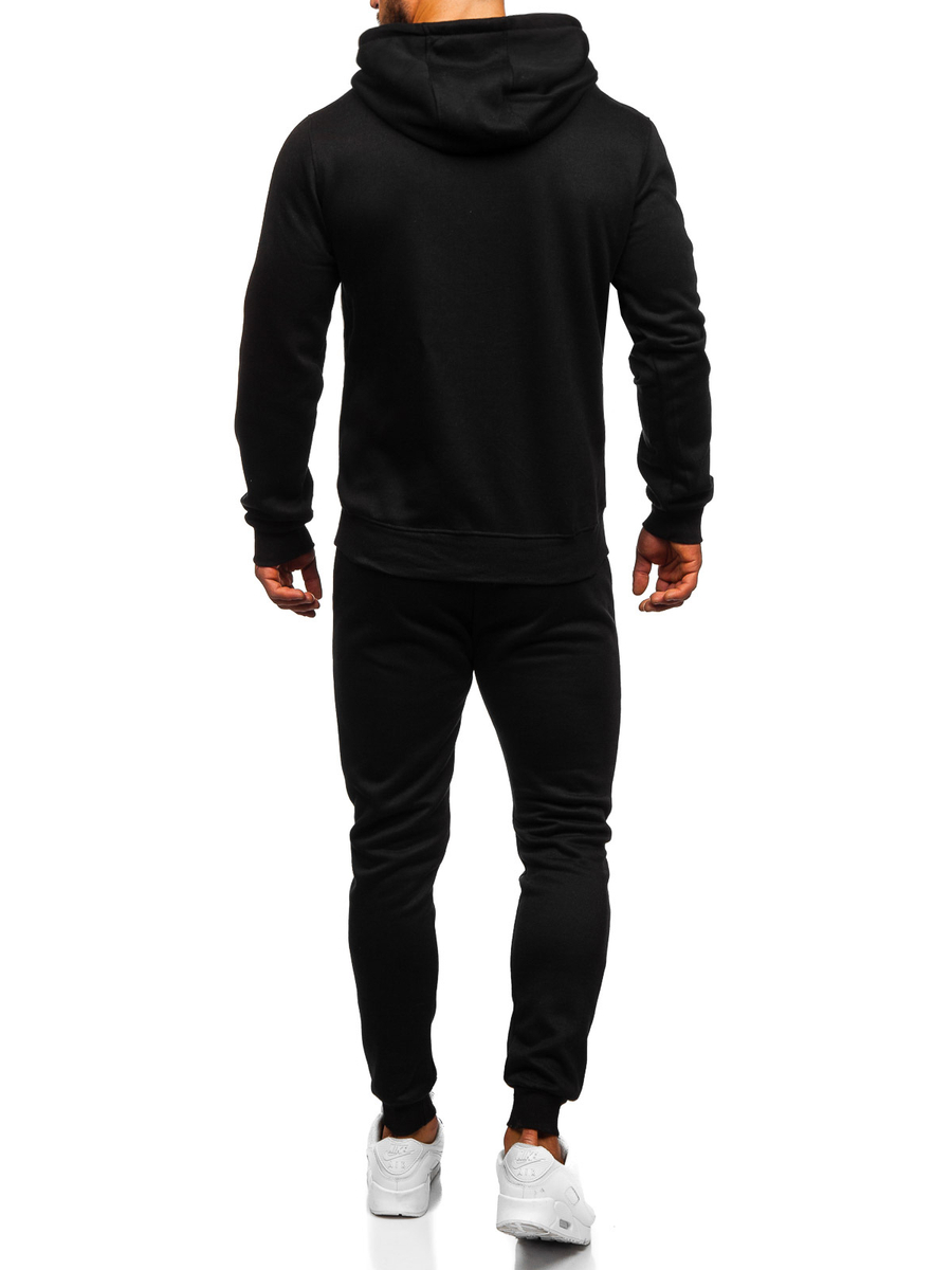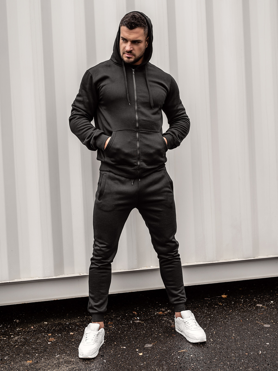 Le survêtement pour homme noir Bolf 10386 est un set de sport qui est composé d'un sweat-shirt et d'un pantalon sportif. Le sweat-shirt est fermé par une fermeture éclair et possède des poches extérieures. Le pantalon a une taille ajustable avec une trépointe forte et un cordon et deux poches extérieures. Une coupe simple et ajustée lui donne un look de sport. Le produit est fabriqué dans un tissu doux, agréable au toucher. Le complet de survêtement peut être une base universelle pour créer des tenues de tous les jours ou de sport. Le sweat et le pantalon peuvent être combinés avec des autres éléments de la garde-robe pour obtenir plusieures possibilités de la création des stylisations quotidiennes. Le complet va bien fonctionner avec un tee-shirt et un blouson de transition léger ou de sport.