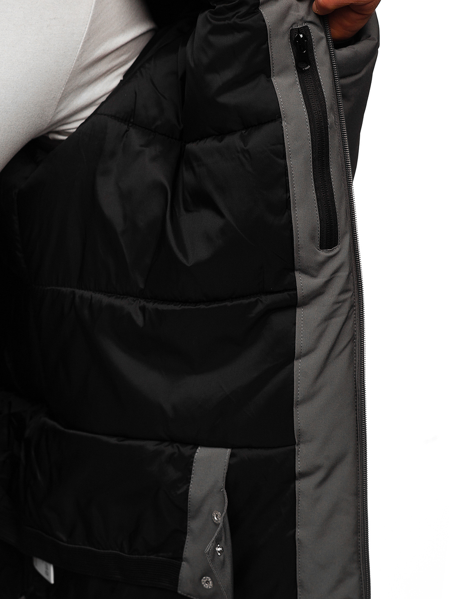 Le blouson d’hiver sportif pour homme graphite Bolf HH011 est un excellent choix pour les mois plus froids. Une veste d'hiver avec une capuche ira à tous les goûts masculins. Le produit est fermé par une fermeture éclair. La capuche est amovible et dispose d'un réglage 2D. Col haut debout, zippé, fournira une excellente protection contre le froid. Un élément pratique de la veste sont des poches: deux fermetures éclair latérales, poitrine également zippée et deux poches intérieures, l’une attachée avec velp. Les manches réglables à velcro, finies avec une trépointe élastique à l'intérieur avec un trou pour le pouce. Parfait pour s'entraîner, marcher, sortir en ville ou faire de la randonnée en montagne. Il est composé de 94% de polyester et de 6% d'élasthanne. Il se compose génialement avec un jean et un pantalon sportif.