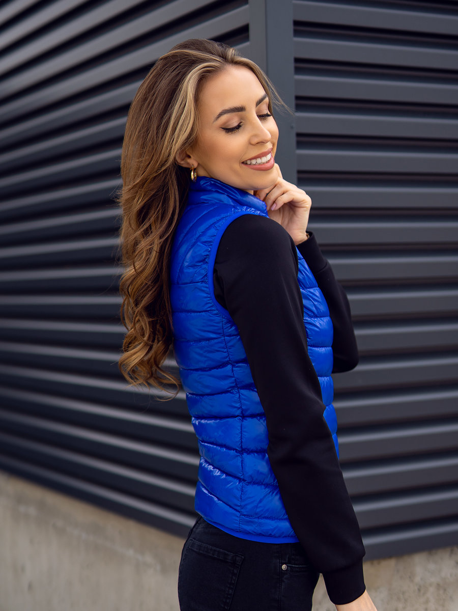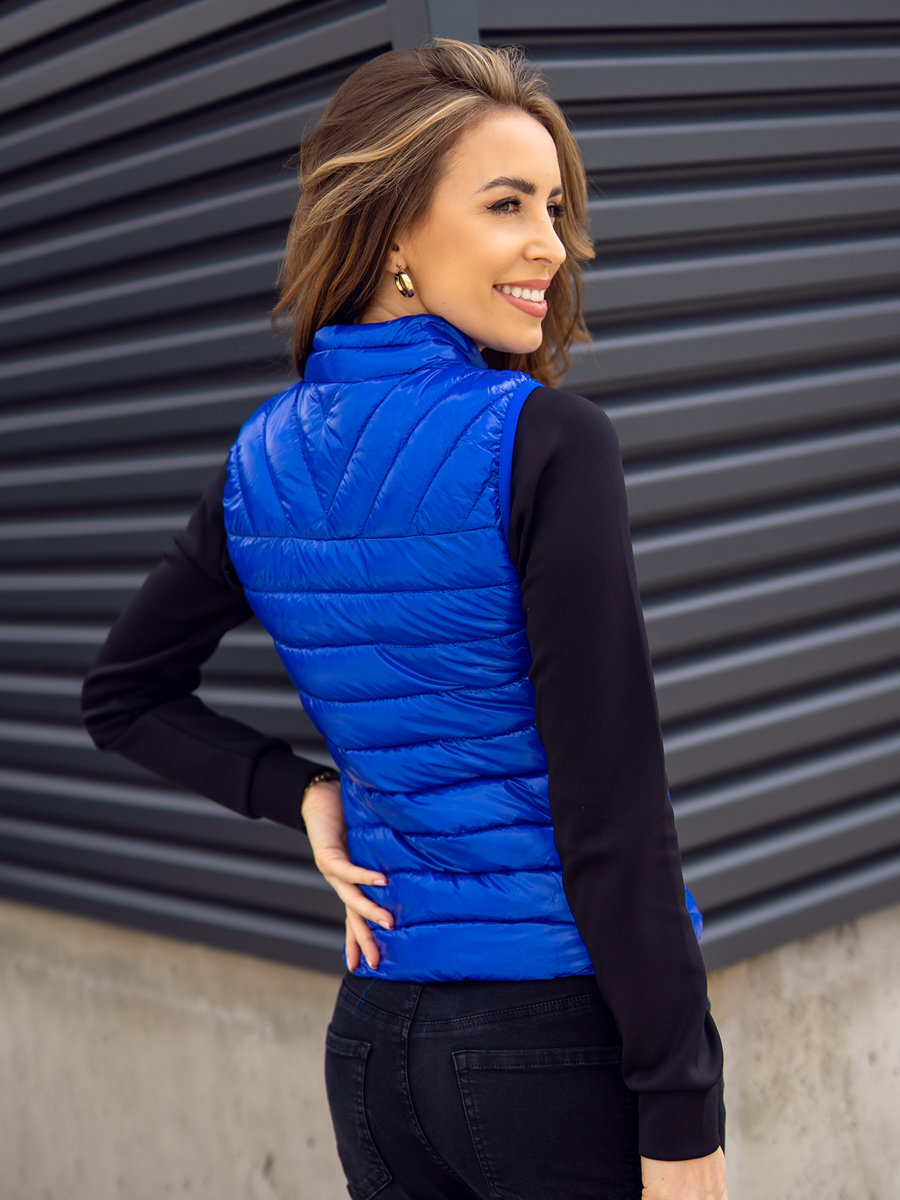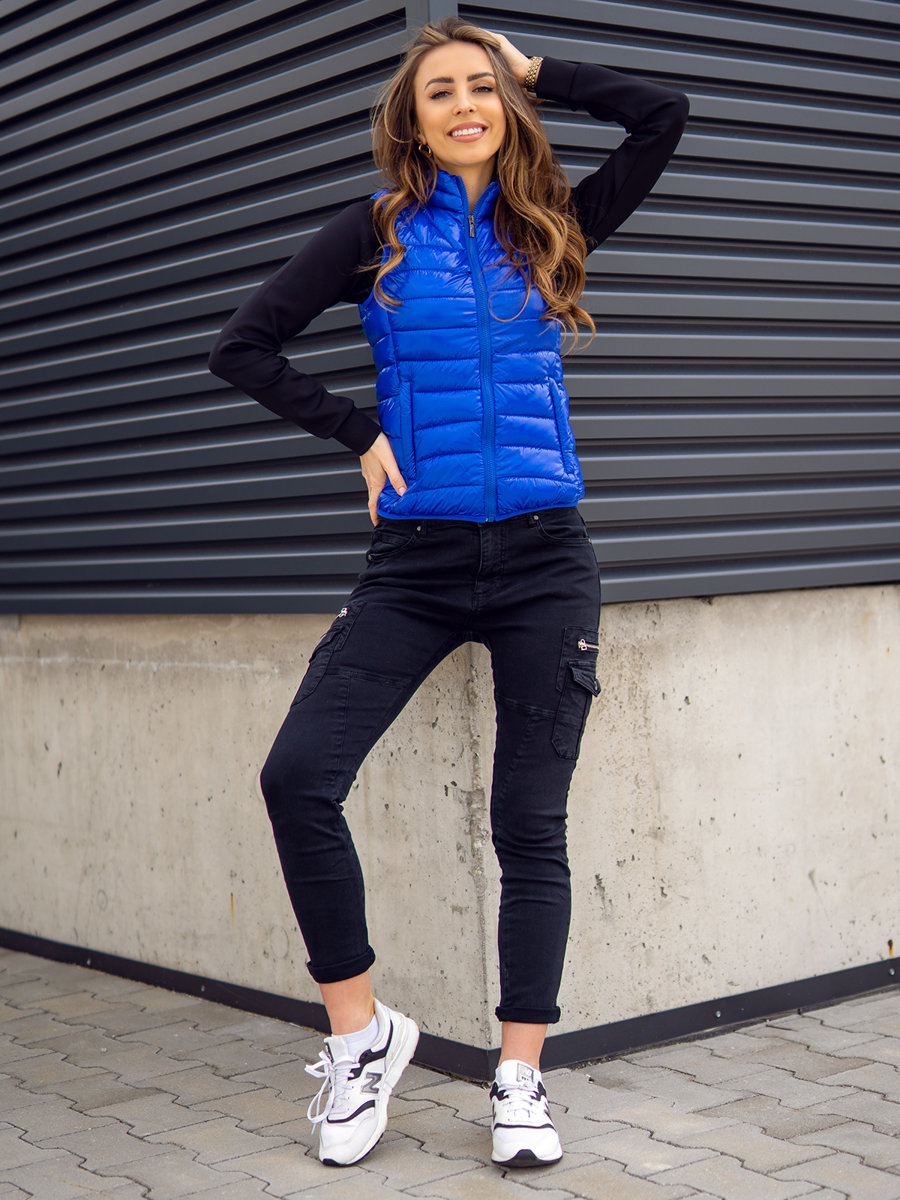 Le gilet matelassé pour femme bleu Bolf R0107AA est parfait pour créer des tenues sportives et celles de style urbain. Tout matelassé, il a un caractère de sport. Il est fermé par une fermeture éclair et possède un col montant. Deux poches extérieures zippées lui ajoutent un caractère pratique. Il est fait en 100% de nylon et il est donc extrêmement confortable. Ce gilet de coupe classique est une excellente alternative à une veste d'automne et de printemps. Il peut remplacer avec succès une veste de transition ou même un sweat-shirt, offrant une protection contre le froid et le vent. Le gilet peut être utilisé comme base pour de nombreux styles à la mode. Il va parfaitement avec un pantalon sportif créant une tenue de sport décontractée. Il s'adapte aussi au jeans et un t-shirt.