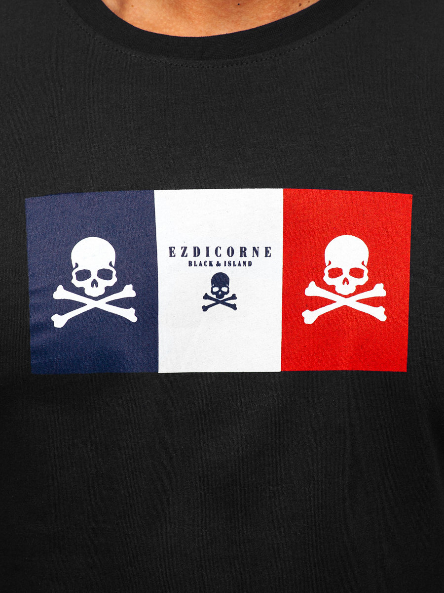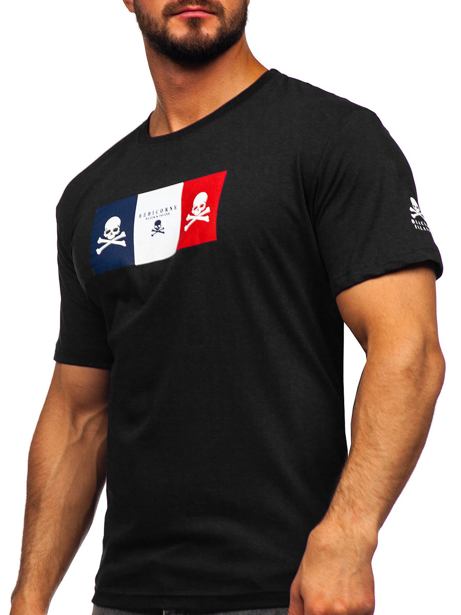 Tee-shirt en coton imprimé pour homme noir Bolf 14784