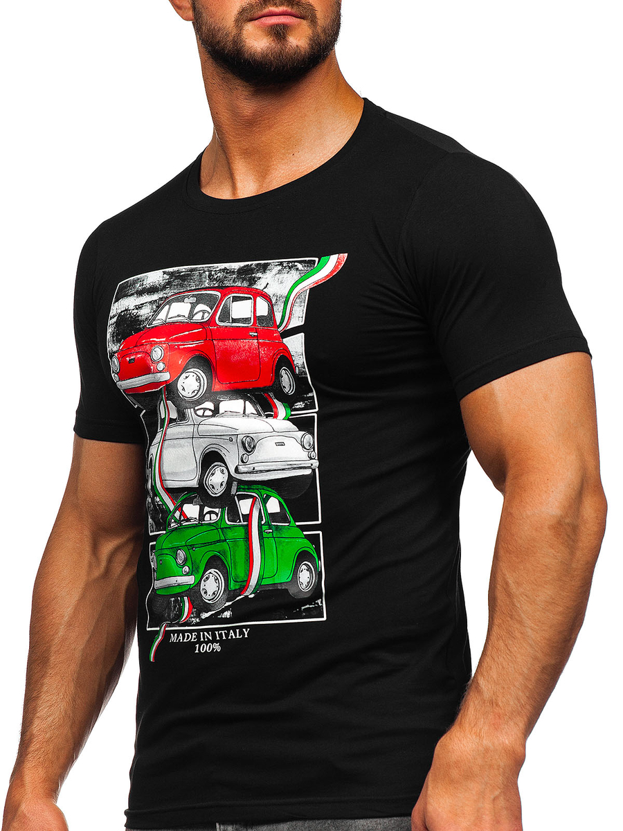Tee-shirt imprimé pour homme noir Bolf HM918