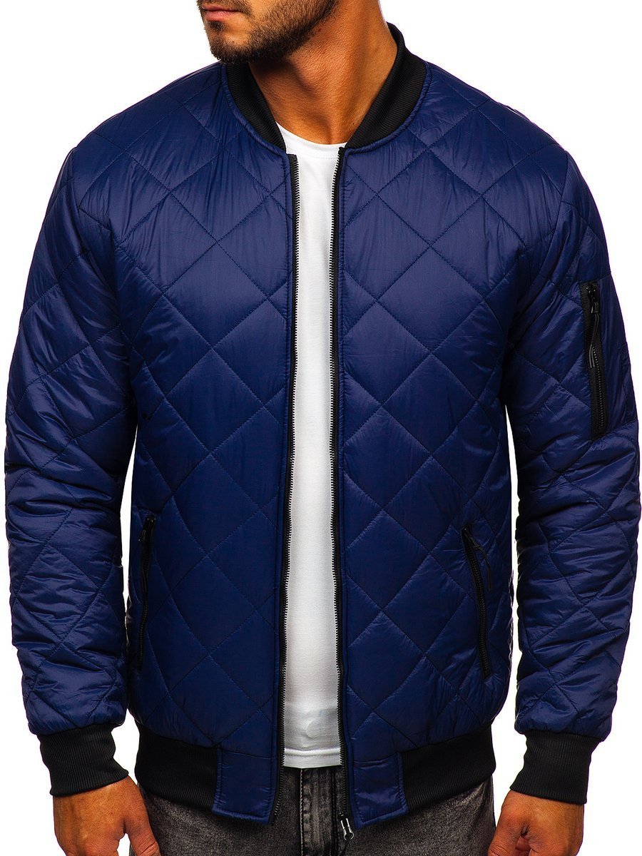 Le blouson bomber matelassé bleu foncé pour homme Bolf MY-01A est un classique à la mode parmi les blousons bomber. La veste, grâce à sa simplicité et sa qualité de fabrication, est intemporelle et peut être portée pendant de nombreuses saisons. Le blouson bomber s'adapte parfaitement aux dernières tendances, il est fait d'un tissu agréable au toucher. Il est matelassé de diamants. Il a un petit col montant et se ferme par une fermeture éclair. Les manches, le col et le bas de la veste sont finis de larges bords noirs. Le blouson bomber possède deux poches extérieures pratiques avec fermetures éclair. Il possède également une poche zippée supplémentaire sur la manche gauche.