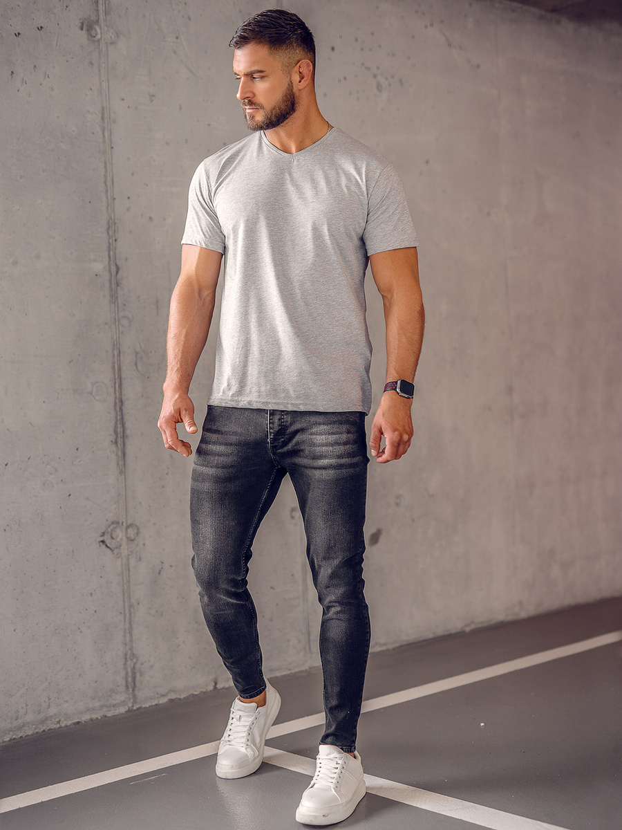Opinions des utilisateurs de T-shirt gris uni à col en V pour homme Bolf 192131A