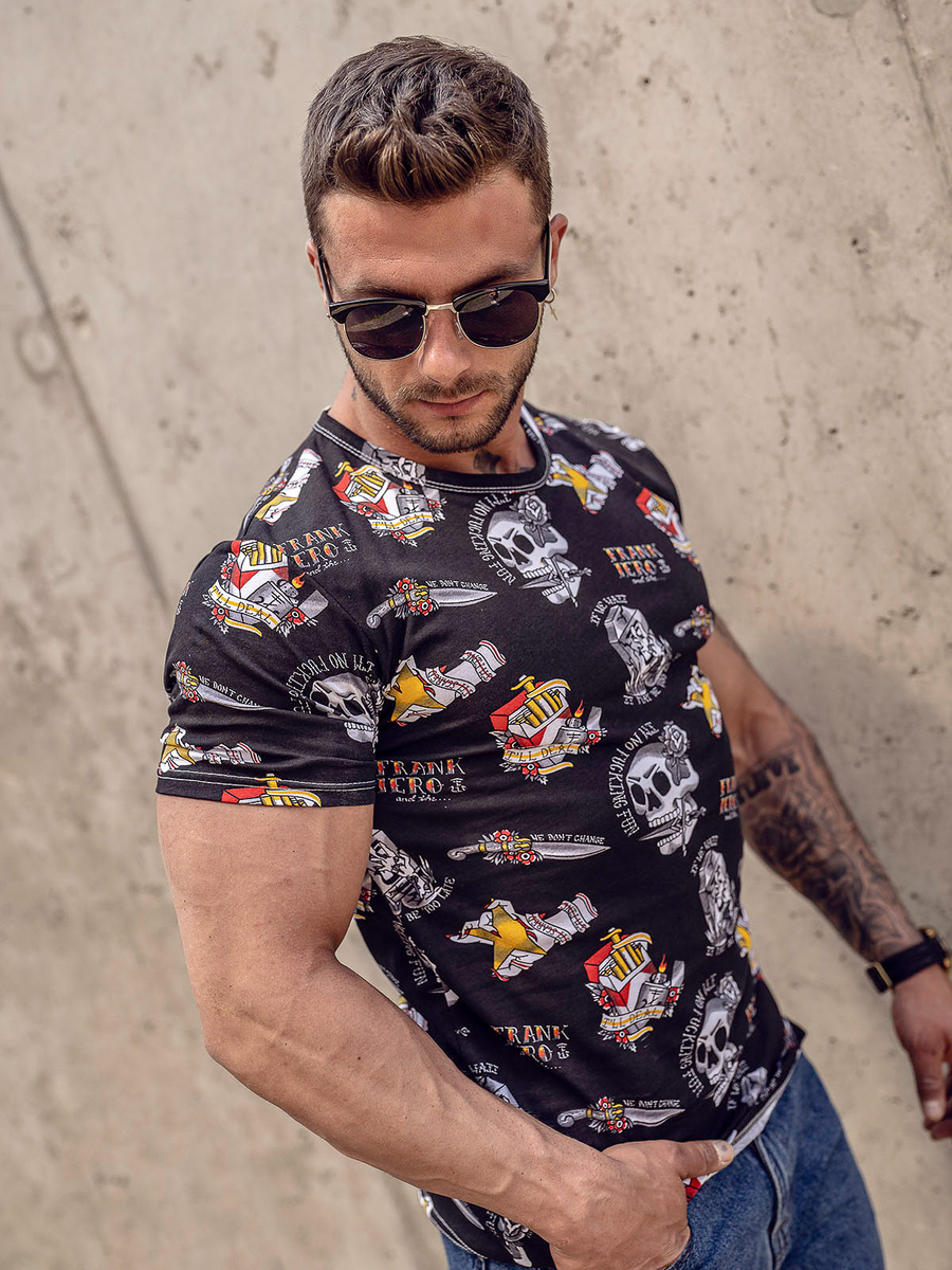 Le tee-shirt imprimé pour homme Bolf 14963A est une proposition pour les hommes qui n'ont pas peur des motifs et qui aiment se démarquer dans la foule. Il sera parfait pour la sortie en ville et avec des amis ou au quotidien. Il est composé de 100% coton, ce qui le rend doux au toucher et flexible. La coupe slim fit met parfaitement en valeur la silhouette et un motif tendance sur la toute surface ajoute un caractère moderne. Il se présente fantastiquement avec un pantalon baggy. Il est disponible en plusieurs variantes de couleurs.