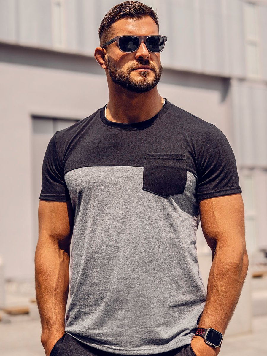 Tee-shirt uni avec une petite poche pour homme noir-graphite Bolf 8T91A