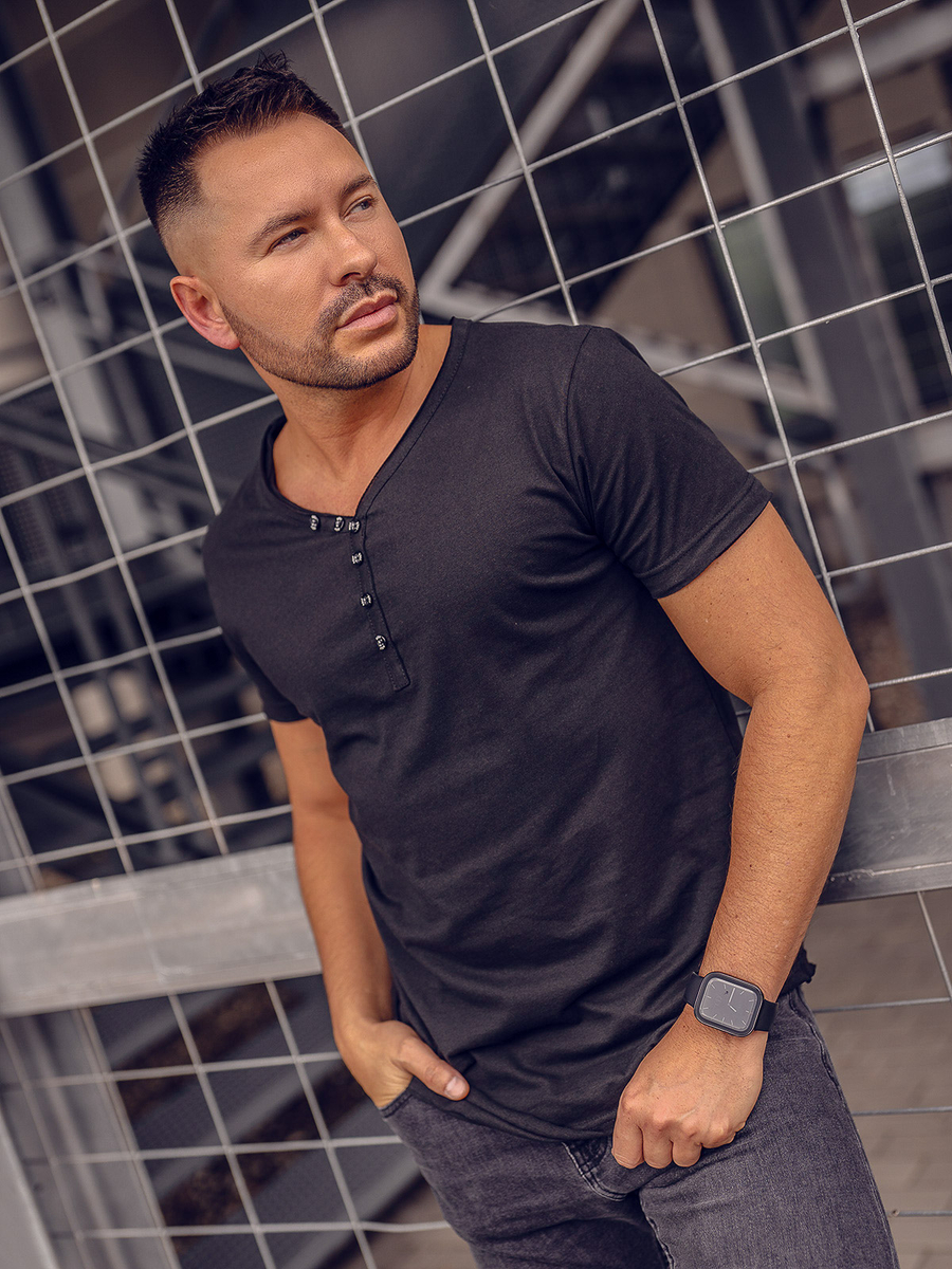 Opinions des utilisateurs de T-shirt noir uni en coton à col en V pour homme Bolf 4049A