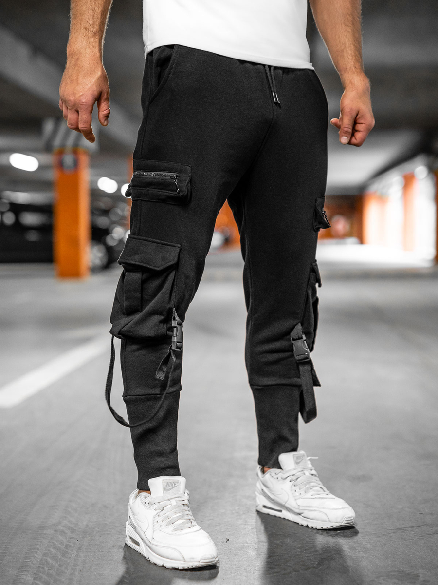 Le pantalon de survêtement cargo noir pour homme Bolf 6582A a été créé pour les adeptes des tenues urbaines. Le pantalon de combat est réglable à la taille grâce à un cordon de serrage solide et une ficelle, grâce auquel il s'adapte parfaitement à la silhouette. Ils sont composés à 70% de coton et à 30% de polyester, ce qui les rend extrêmement confortables et agréables au toucher. Les poches sont un élément fonctionnel et pratique : deux poches extérieures sans fermeture, deux petites poches latérales avec fermeture éclair et deux poches latérales recouvertes d'un rabat. Les attaches décoratives sur les poches latérales leur donnent un look unique. Les jambes sont terminées par des revers qui épousent parfaitement le corps. Le pantalon de combat s'accordera parfaitement avec un sweat-shirt ou un T-shirt.