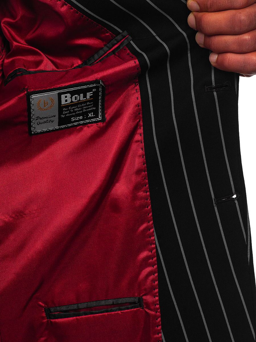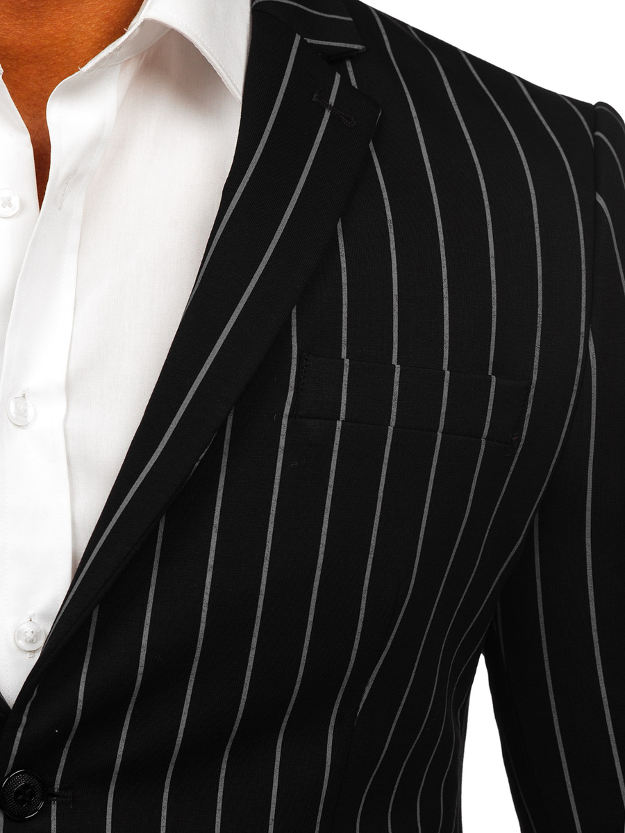 Homme Veste rayée casual Noir-Gris Bolf 1652