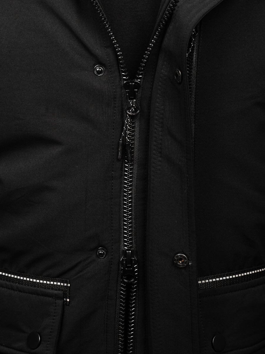 • la capuche amovible, réglable, la fermeture à boutons-pression