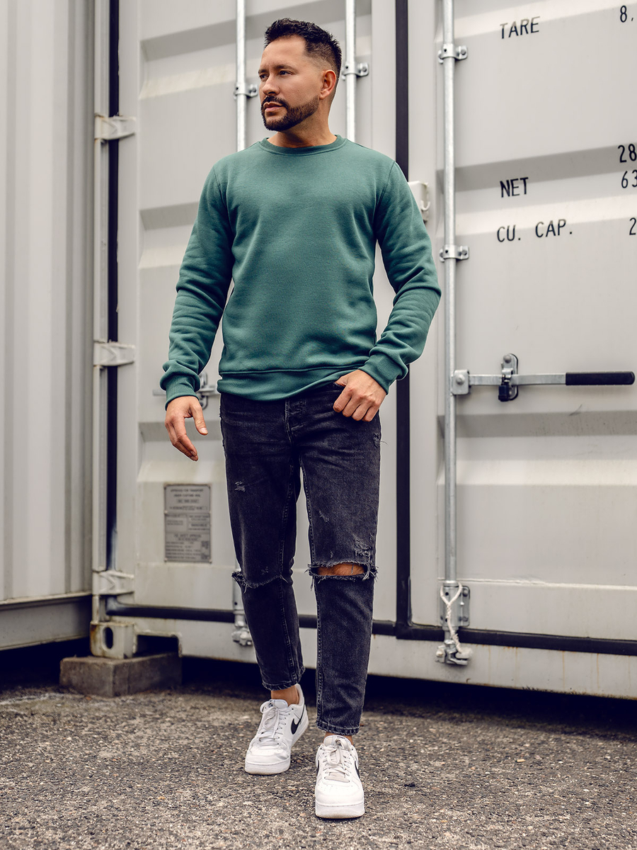 Le sweat-shirt vert pour homme Bolf pour les fans de minimalisme. Génialement ajousté, confortable, universel. Le sweat-shirt sans capuche avec un jean et un pantalon jogger plus moderne. La couleur verte délicate va génialement fonctionner dans des stylisations équilibrées et extravagantes.