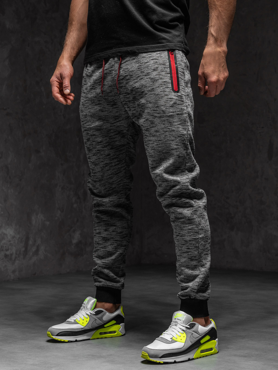 Le pantalon de sport graphite pour homme Bolf imprimé à motif irrégulier. Il va parfaitement à la silhouette, il a deux poches zippées, la trépointe pratique à la taille et des inserts contrastés aux poches Vous pouvez porter le pantalon graphite pour homme dans nombreuses stylisations. Portez-le avec un tee-shirt, un tee-shirt manches longues ou un sweat-shirt.