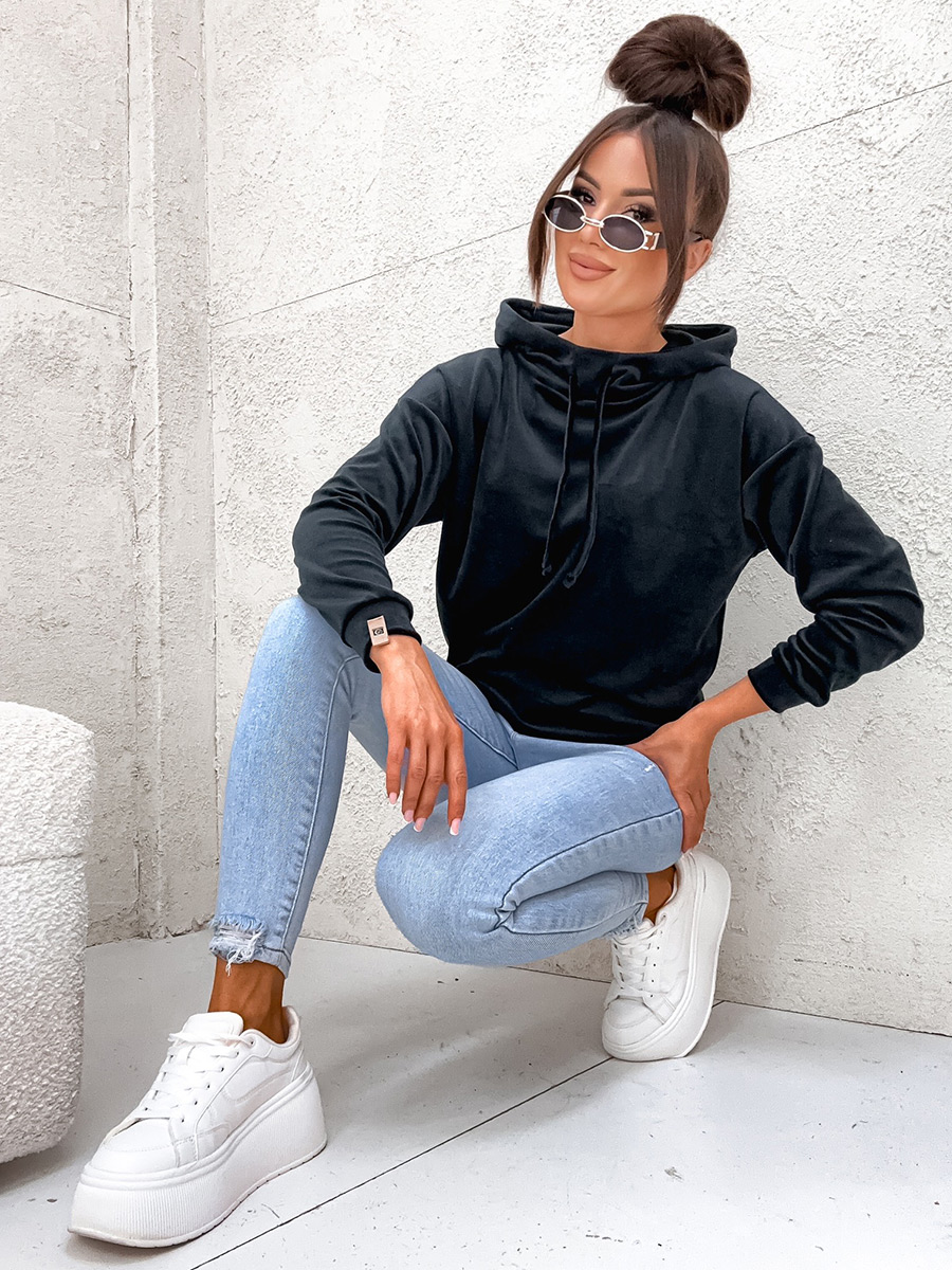 Opinions des utilisateurs de Femme Sweat-shirt à capuche en velours Noir Bolf 8270