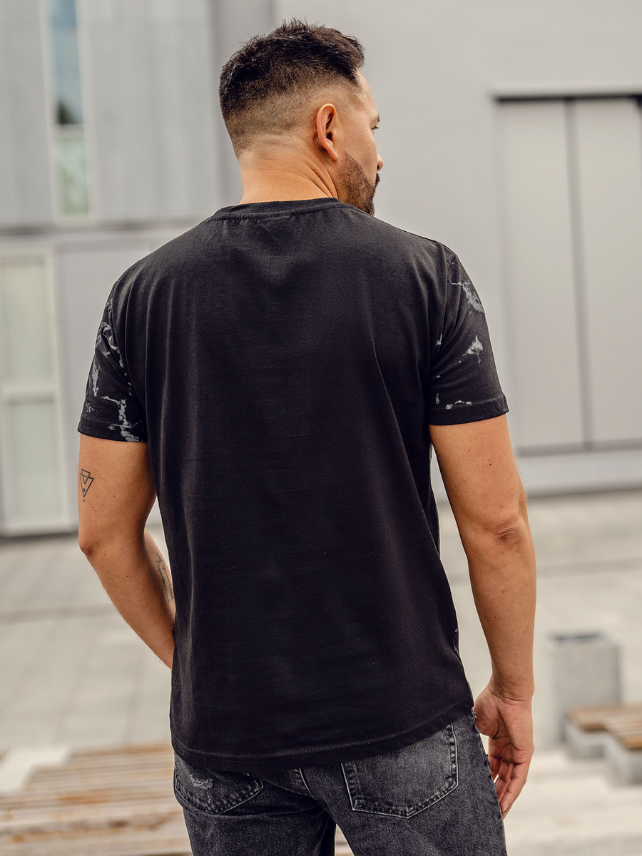 Le T-shirt pour homme en coton noir avec imprimé Bolf 627A-1 de coupe droite, col rond, s'adapte à toutes les silhouettes. Grâce à son imprimé original, le T-shirt vous démarquera et donnera du caractère à votre stylisation! Le produit est fait de matériaux de haute qualité et c'est pourquoi il est très confortable. Le T-shirt est une base de chaque stylisation moderne et universelle. Portez-le pour une réunion entre amis, un entraînement ou une sortie à la montagne.Les jours plus chauds, il s'associera parfaitement à un short, et les jours plus froids, associez-le à un jean.