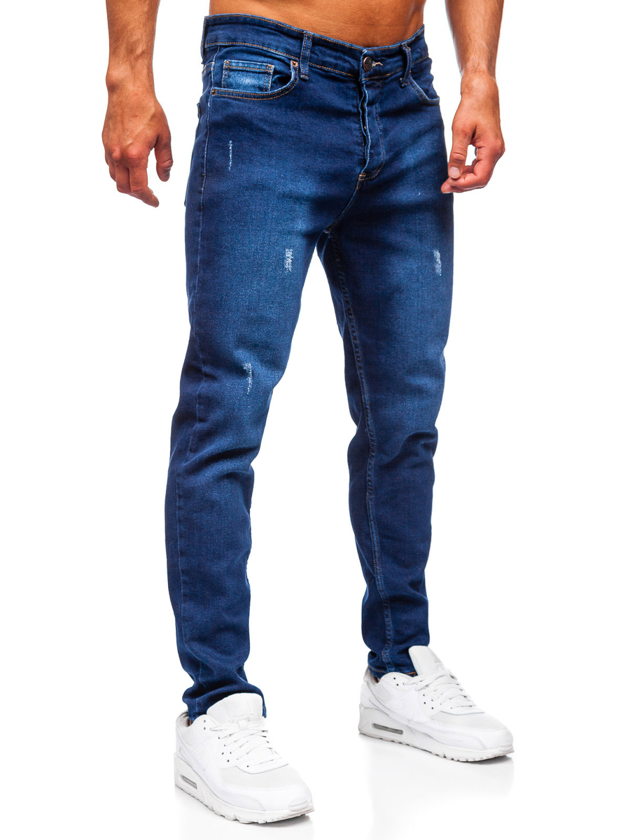 Le pantalon en jean slim pour homme bleu marine Bolf 6516 est un jean typique avec une coupe près du corps. Il s'agit d'un denim d'une teinte bleu marine assez foncée. Il y a des abrasions mineures et des nuances subtiles sur les jambes. Le jean est composé à 98 % de coton et à 2 % de Lycra, ce qui signifie qu'il est flexible. Ils se ferment avec des boutons, possèdent deux poches sur les côtés et deux à l'arrière. Portez-les avec des T-shirts ou des sweats basiques pour créer des tenues amples et décontractées au quotidien. Vous pouvez également les porter avec un polo ou une chemise avec un col et créer un style chic et décontracté, parfait pour travailler au bureau ou pour des réunions semi-formelles. N'oubliez pas de compléter le look avec une ceinture en cuir tendance et des chaussures de la même couleur que la ceinture.