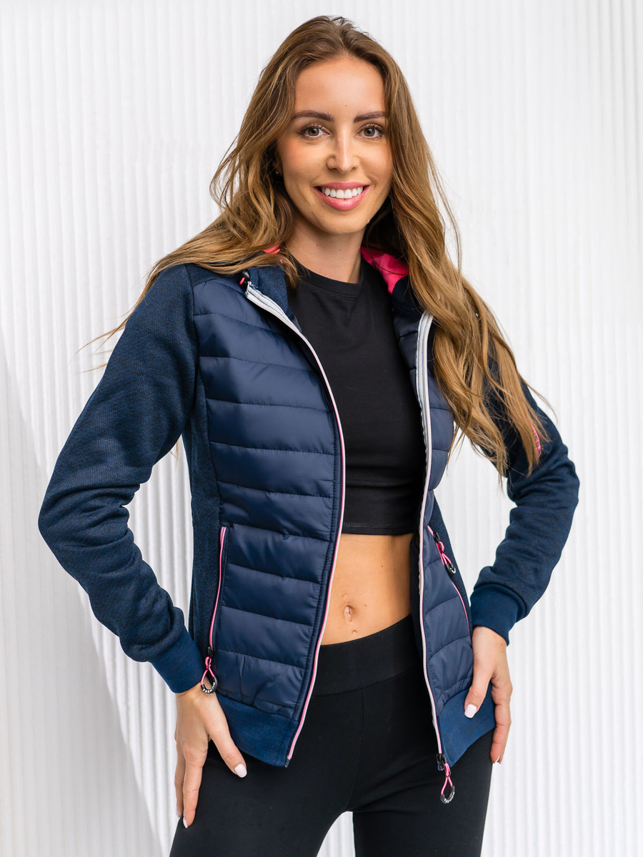 Le sweat-shirt-veste à capuche pour femme bleu marine Bolf KSW4001A1 vous assurera un look parfait lors d'une sortie en ville ou d'une promenade. La capuche réglable associée au col et aux poches extérieures zippées sont parfaites pour créer des styles sportifs. Associez-le à un jean ou à un pantalon de survêtement.