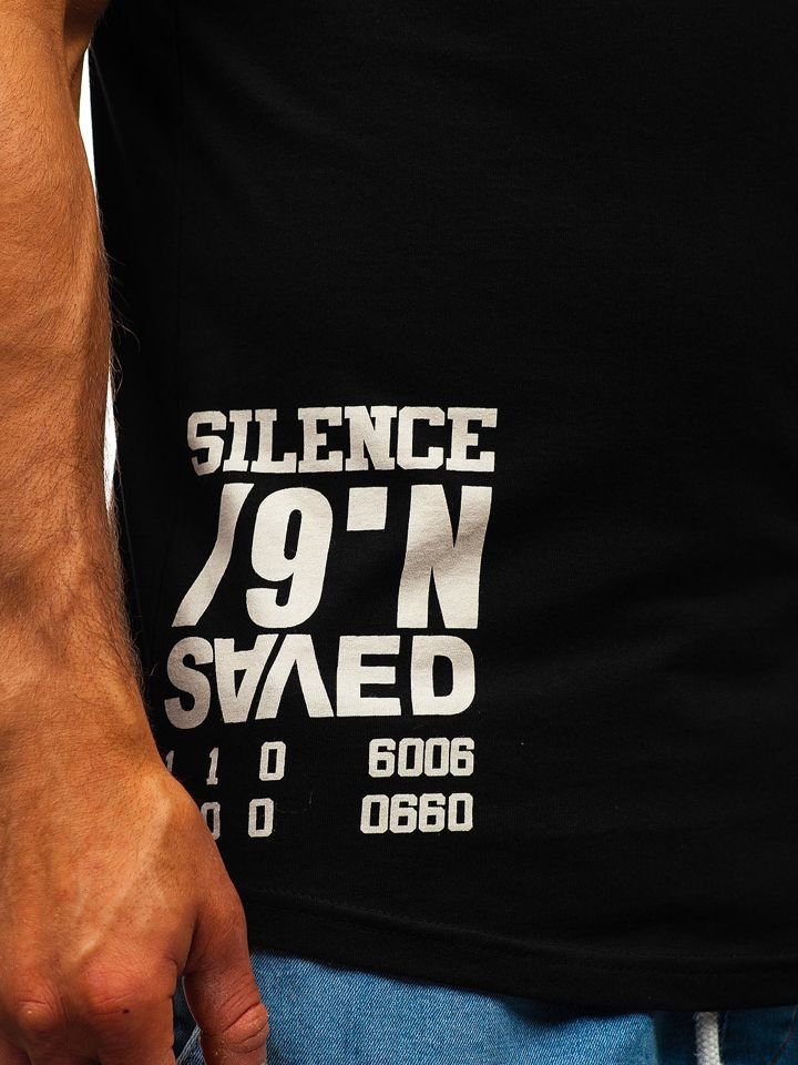 Le débardeur noir en coton idéal en jours chauds Bolf tank top à capuche. Léger, confortable, a un imprimé et un bas arrondi. Le t-shirt noir imprimé se présente génialement à la silhouette masculine, va bien en tenues de sport avec un pantalon jogger, un jean et un short.