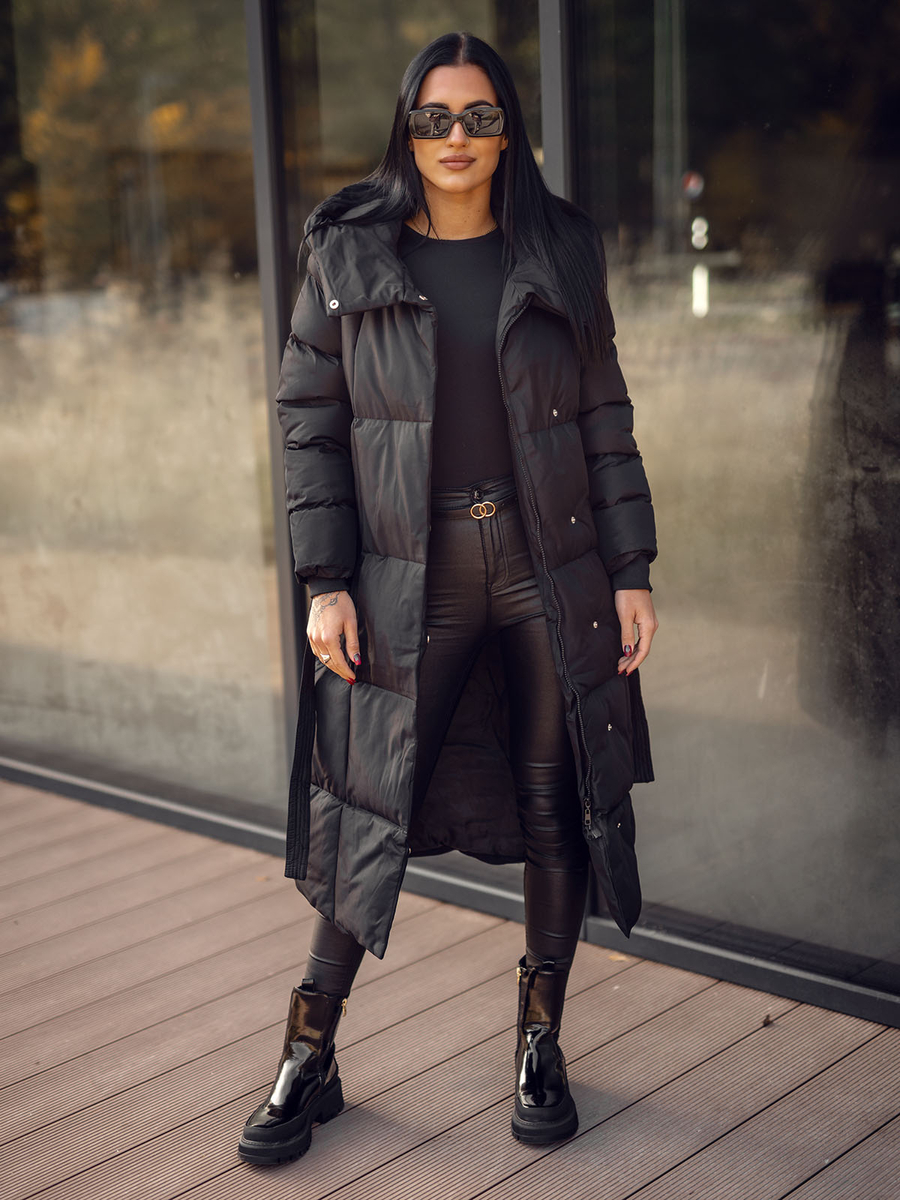 Femme Blouson d'hiver longue matelassée à capuche Noir Bolf 5M3227