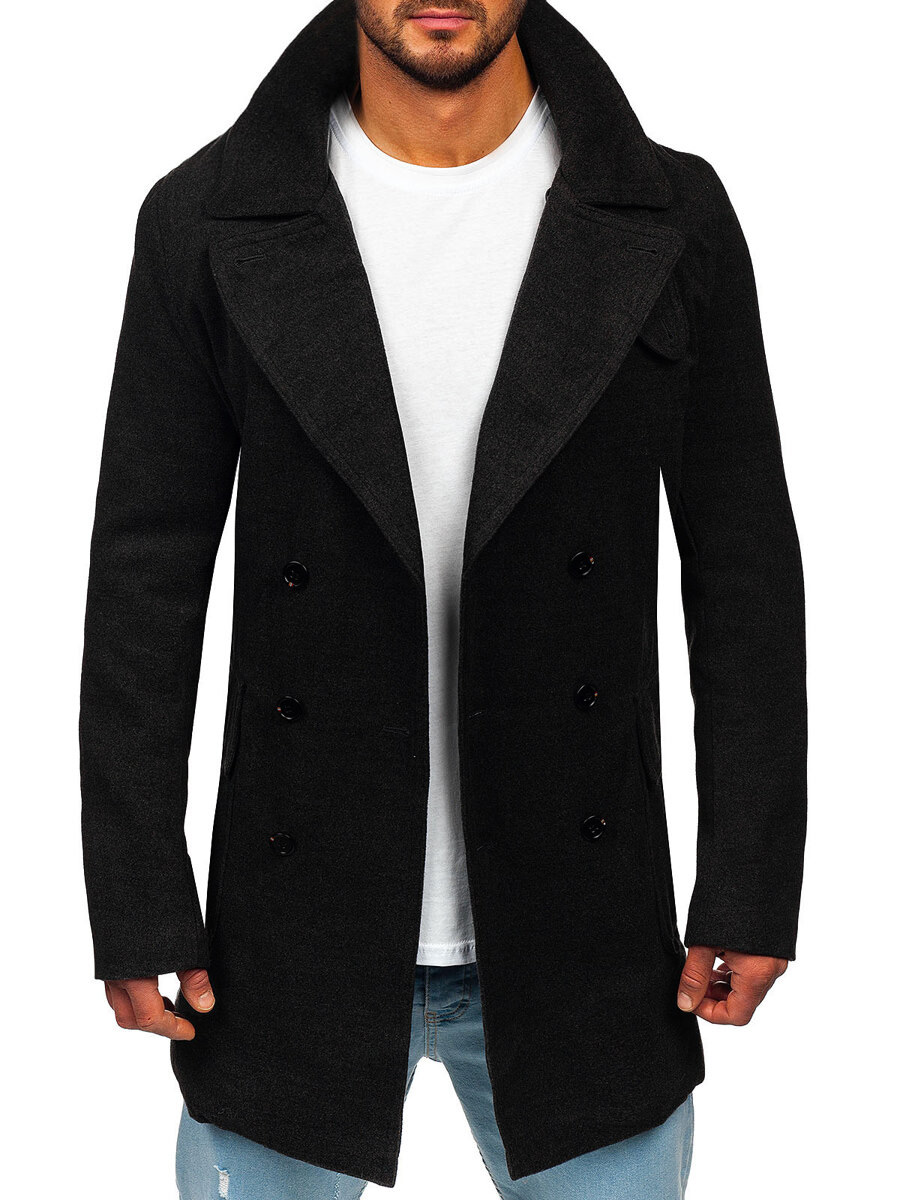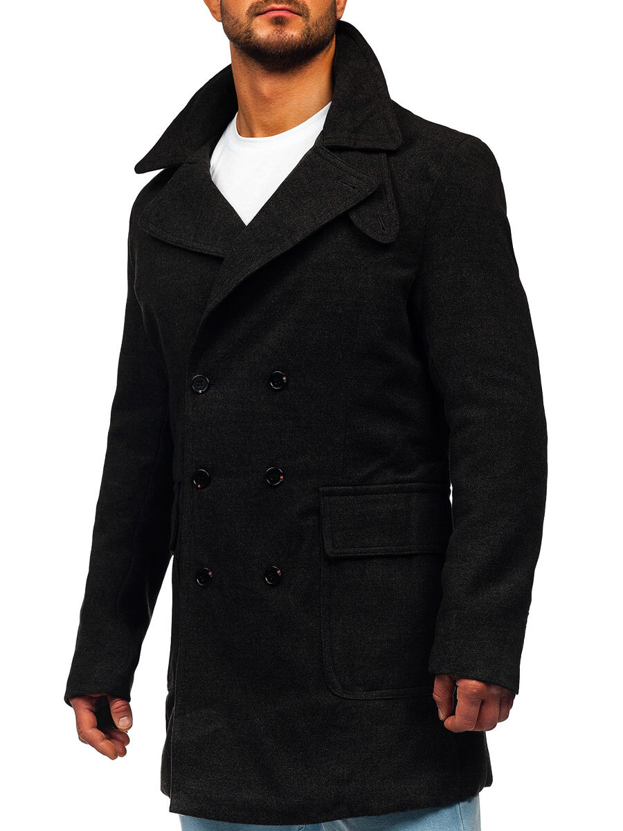 Le manteau d'hiver pour homme noir Bolf 1048A est fait de tissu isolant, parfait pour l'hiver. Il est fermé par des boutons et un fermoir à double boutonnage ajoute du style et de l'élégance. Il possède deux poches extérieures fermées par des boutons-pression et surmontées d'un rabat à la mode et une poche intérieure fermée par un bouton. Un manteau avec une coupe ajustée, s'adapte parfaitement à la silhouette athlétique masculine. Il a un col inversé et une fermeture à bouton supplémentaire au cou. Le produit noir est parfait pour les couleurs plus sobres et plus audacieuses.