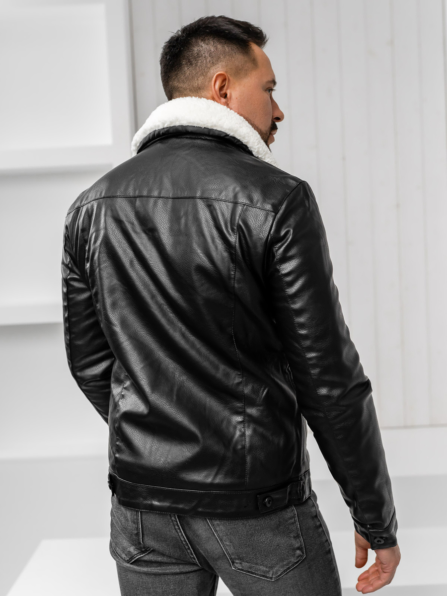 Homme Veste d'hiver aviateur en cuir Noir Bolf 8830