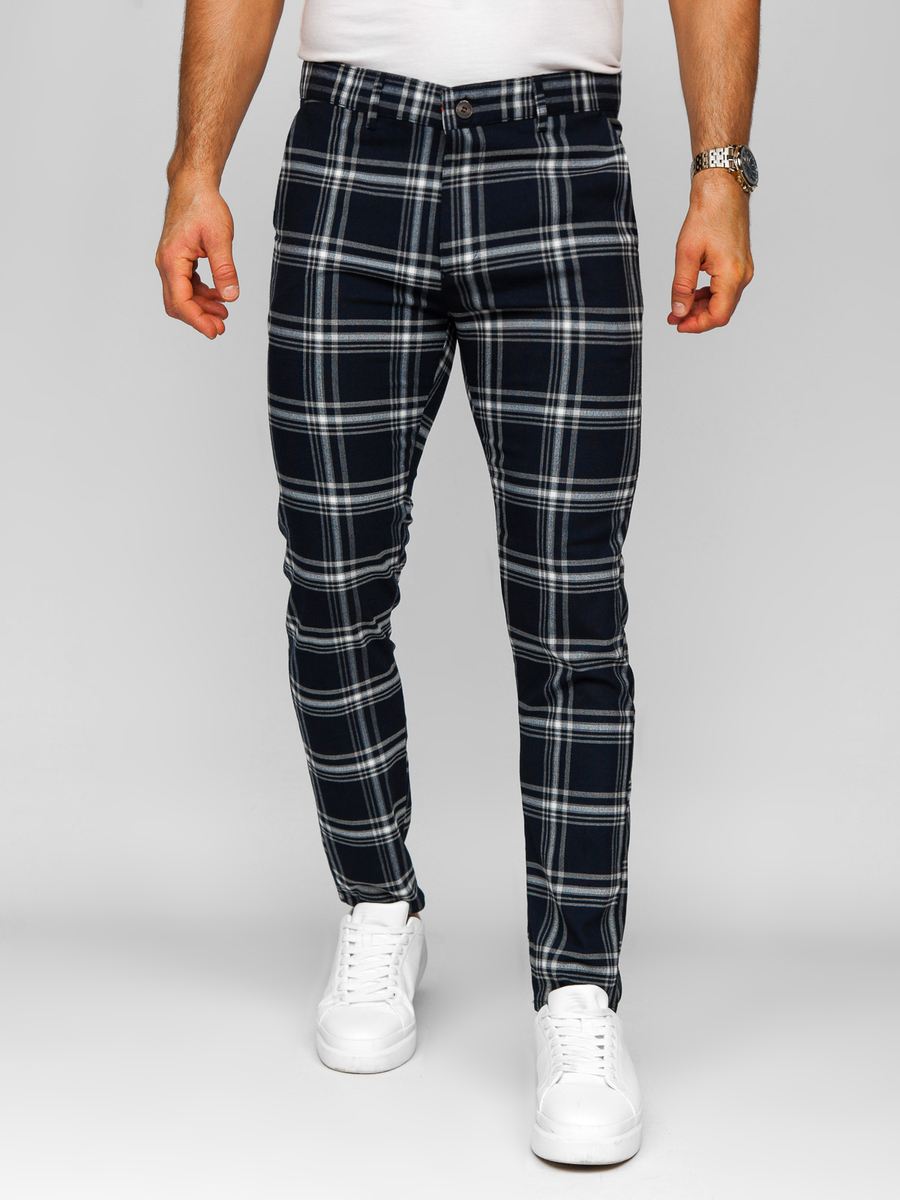Homme Pantalon élégant à carreaux Bleu foncé Bolf 184144