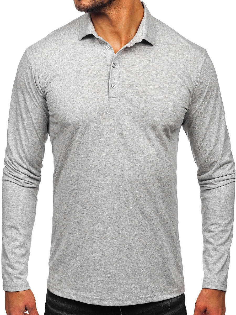 Homme Polo en coton à manches longues Gris Bolf 5119