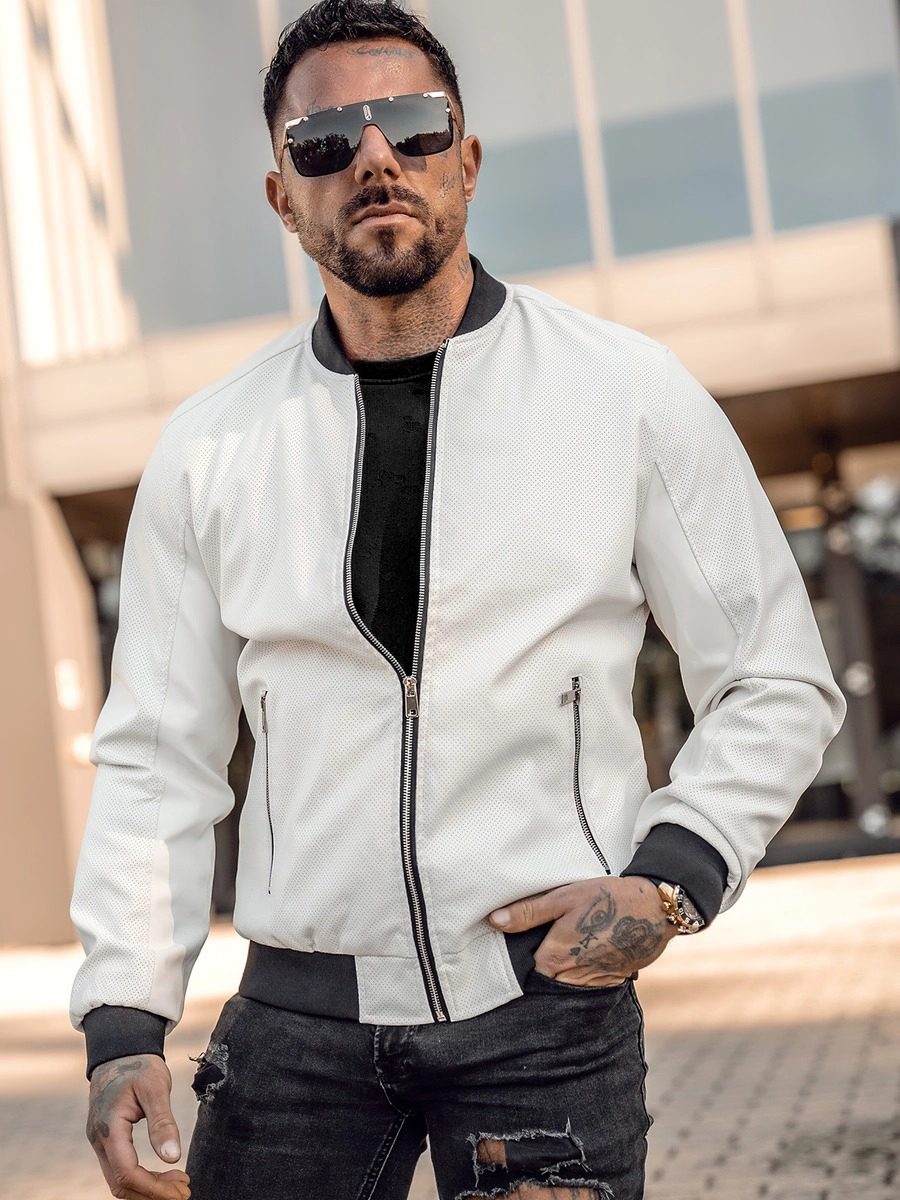 Homme Blouson bomber en cuir Blanc Bolf 7110A2