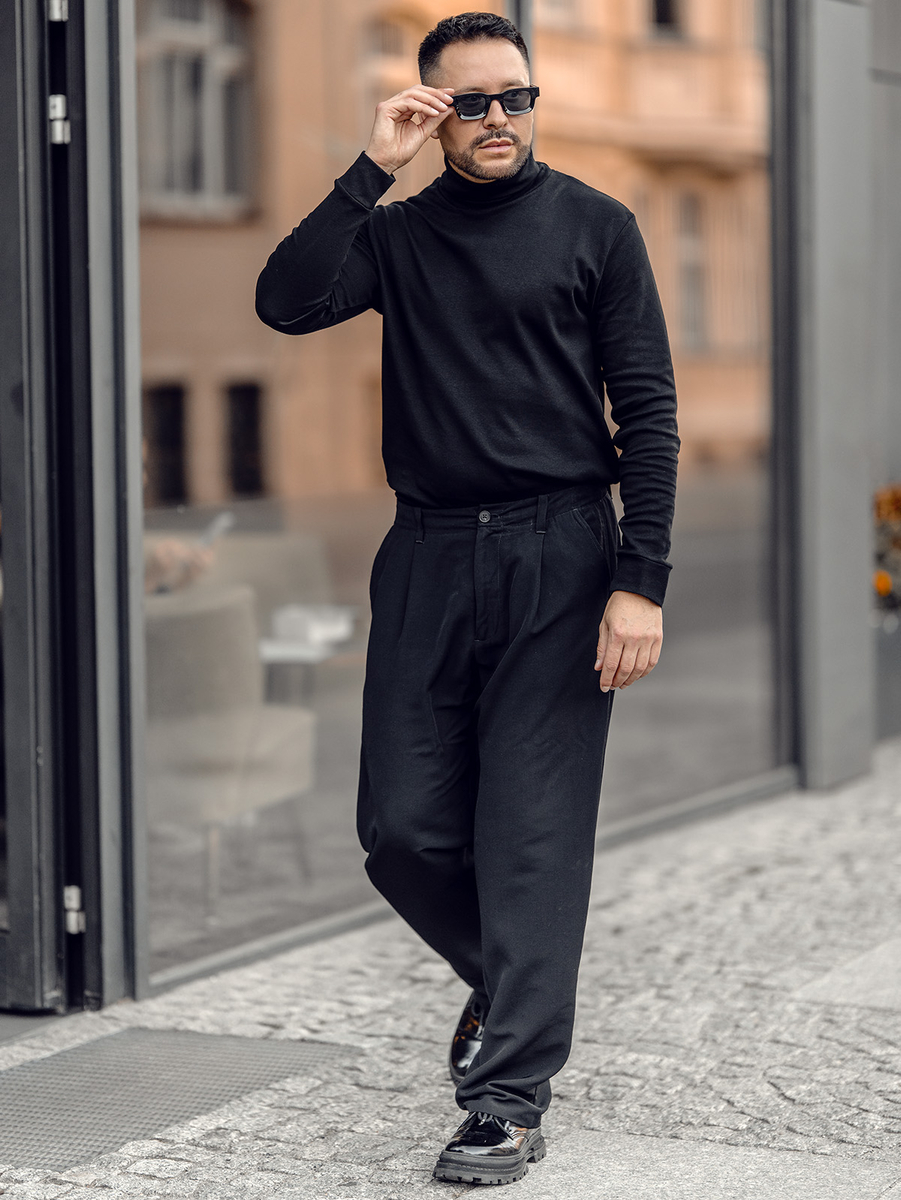 Col roulé basique pour homme, en coton, noir, Bolf 535A